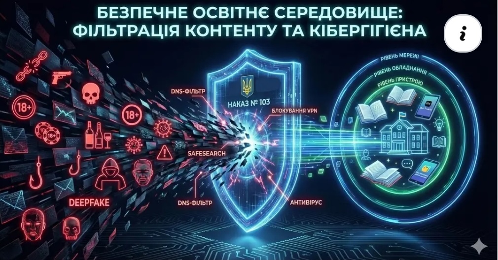 Міністерство освіти і науки України затвердило Методичні рекомендації щодо фільтрації інтернет-контенту в закладах освіти (наказ №103 від 26.01.2026). Документ визначає чіткі вимоги до захисту учнів у цифровому середовищі.