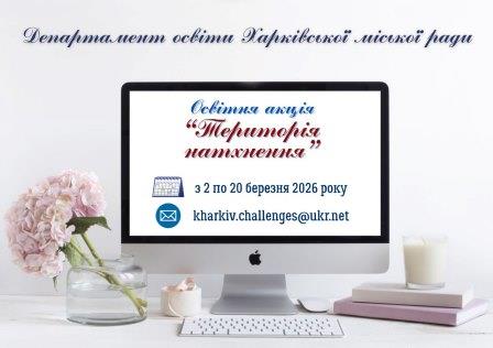 Сьогодні питання ментального здоров’я учасників освітнього процесу набуває особливої актуальності: постійна напруга, тривожність і невизначеність потребують делікатної, безпечної та доступної підтримки. Саме тому важливо створювати простір, де діти, підлітки та дорослі можуть говорити про свої емоції, знаходити внутрішні ресурси й відчувати опору. Департамент освіти Харківської міської ради у березні запрошує родини учнів 1–11-х класів, педагогів та представників позашкілля долучитися до освітньої акції «Територія натхнення», яка триватиме з 02 по 20 березня 2026 року.