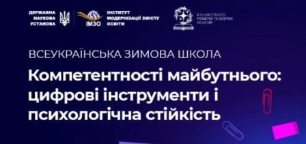 ДНУ «Інститут модернізації змісту освіти» повідомляє, що 05 по 07 січня 2026 року відбудеться Всеукраїнська зимова школа «Компетентності майбутнього: цифрові інструменти і психологічна стійкість».