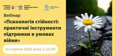 Про проведення вебінару «Психологія стійкості: практичні інструменти підтримки в умовах війни»Опублікував admin. Дата публікації 12/08/2025Теги: Загальні