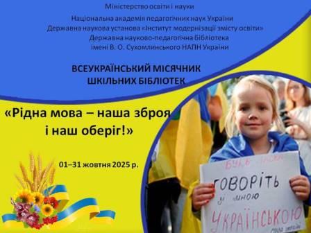 Всеукраїнський місячник шкільних бібліотек «Рідна мова – наша зброя і наш оберіг!»Опублікував admin. Дата публікації 24/09/2025Теги: Наша бібліотека