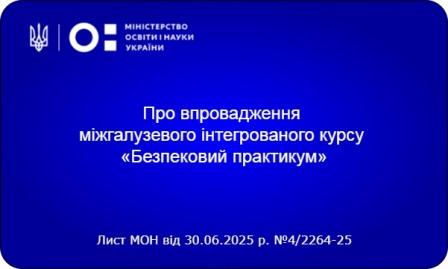 Про впровадження міжгалузевого інтегрованого курсу «Безпековий практикум»Опублікував admin. Дата публікації 11/07/2025Теги: Матеріали для використання в роботі