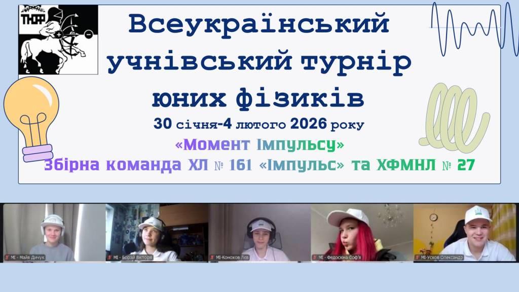 21-23 листопада 2025 року в онлайн форматі відбувся ХХXІV міський турнір юних фізиків, учасниками якого стали 9 команд учнів 9-11-х класів закладів загальної середньої освіти міста.
