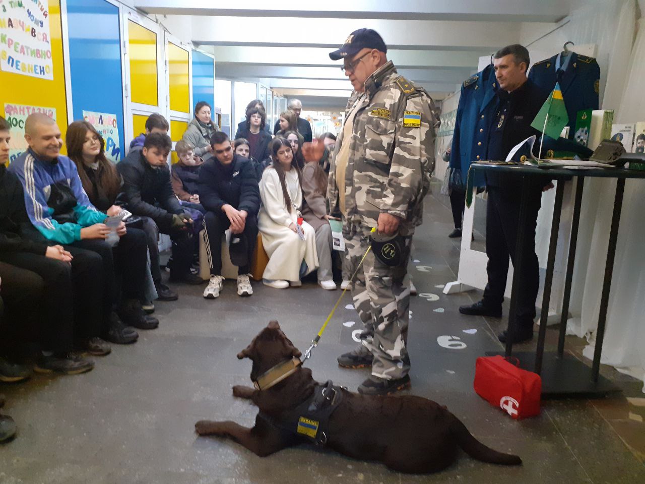 Під час зустрічі була продемонстрована робота кінологів митниці із службовими собаками. Учні на власні очі побачили, як лабрадор на прізвисько Альварес відшукав схованку «контрабандистів». Кінологи розповіли про особливості тренування собак та їхню важливу роль у виявленні заборонених речовин.
