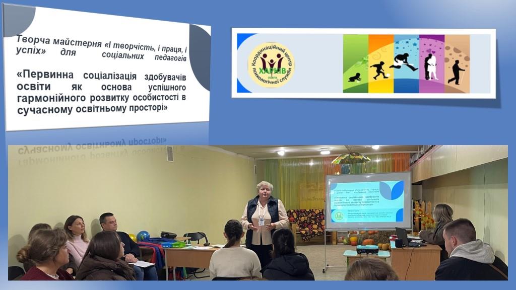 27 – 28 жовтня 2025 року, з нагоди Міжнародного дня соціального педагога, Координаційний центр психологічної служби системи освіти міста Харкова організував і провів серію тренінгових занять у межах творчої майстерні «І творчість, і праця, і успіх». Темою заходу стала «Первинна соціалізація здобувачів освіти як основа успішного гармонійного розвитку особистості в сучасному освітньому просторі».