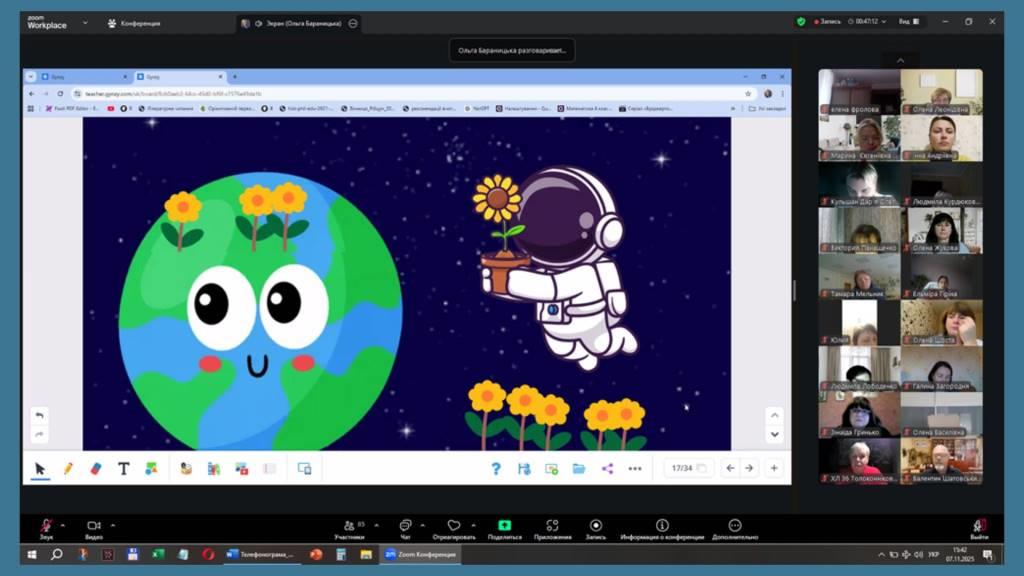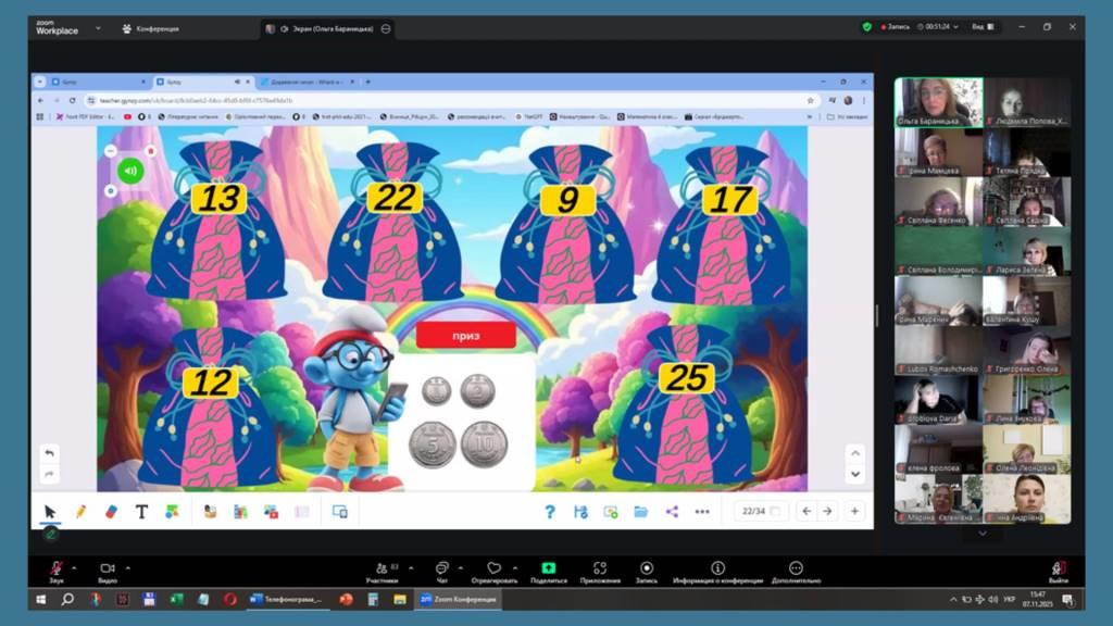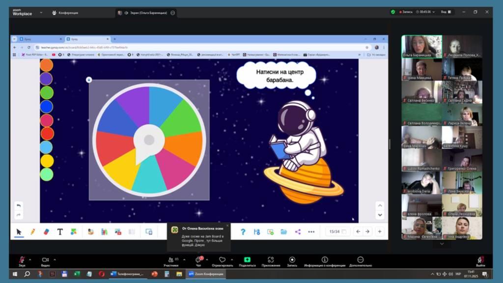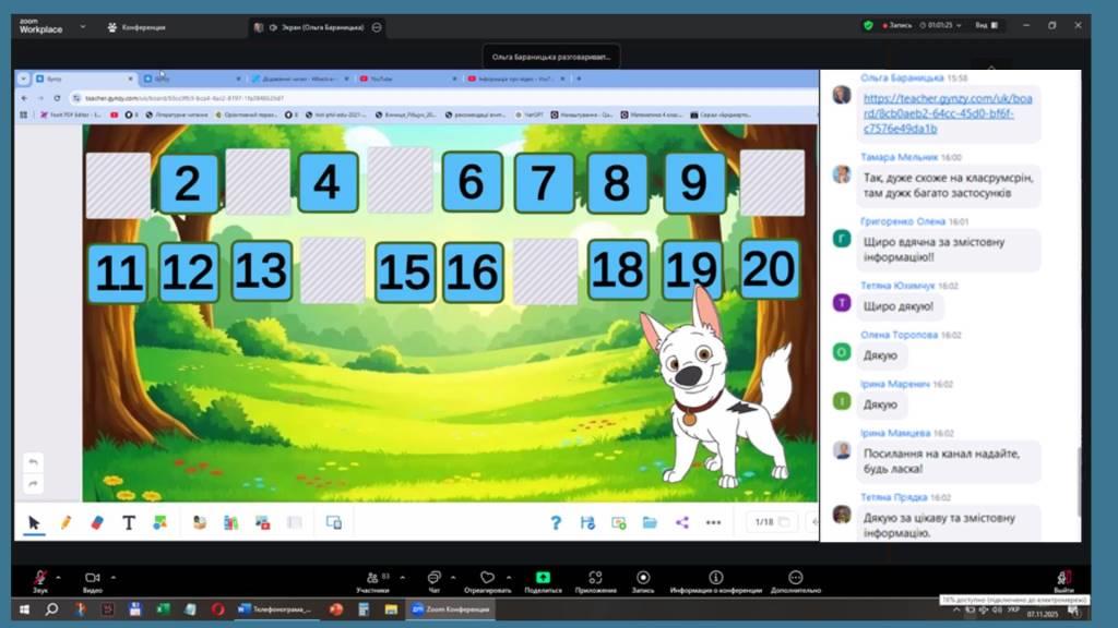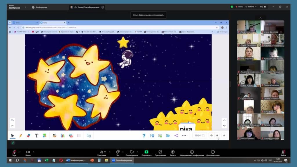 Пані Ольга продемонструвала можливості інтерактивної дошки Gynzy, показала, як за її допомогою створювати цікаві інтерактивні завдання та зробити уроки більш динамічними й захопливими для учнів. Крім того, спікерка передала учасникам власноруч розроблені матеріали, створені на платформі Gynzy, щоб кожен педагог міг використати їх у своїй практиці.