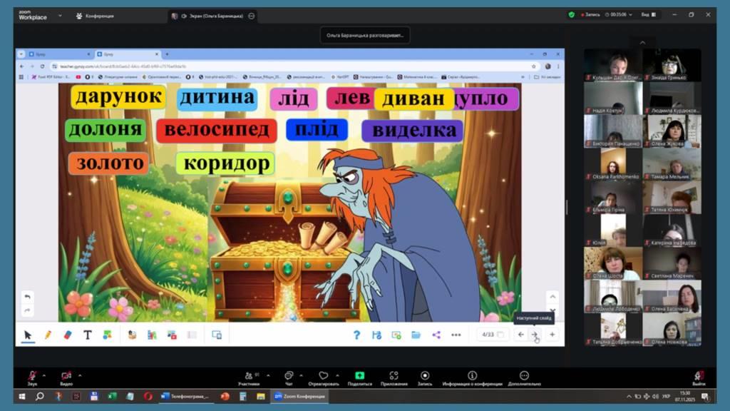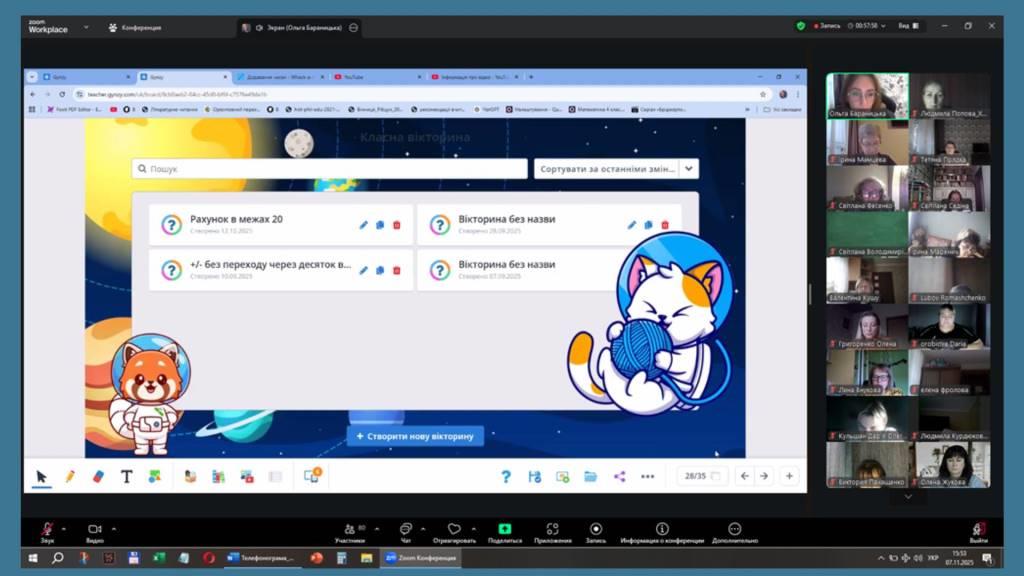 7 листопада 2025 року відбулася онлайн-майстерка «Секрети педагогічної творчості вчителя НУШ» для вчителів початкової школи закладів освіти Харкова, організована Центром професійного розвитку педагогічних працівників міста.