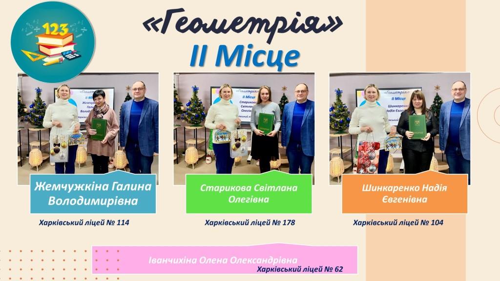 11 дистанційних курсів було розроблено у номінації «Геометрія», які забезпечують ґрунтовне засвоєння математичних понять, розвиток логічного мислення та просторової уяви учнів із використанням візуалізації та сучасних освітніх технологій.