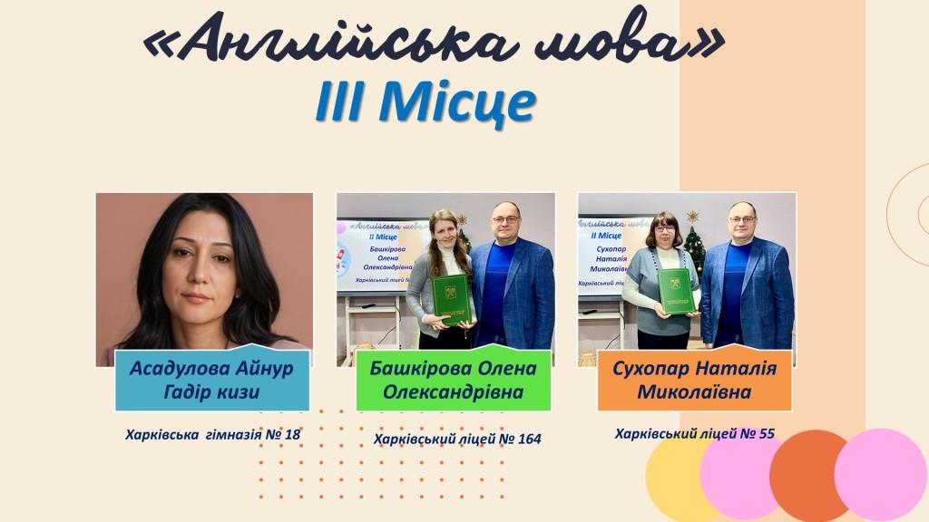 Номінація «Англійська мова» об’єднала 12 учителів, які представили курси, орієнтовані на розвиток комунікативних навичок, удосконалення мовленнєвої практики та інтеграцію інтерактивних цифрових інструментів у навчальний процес.