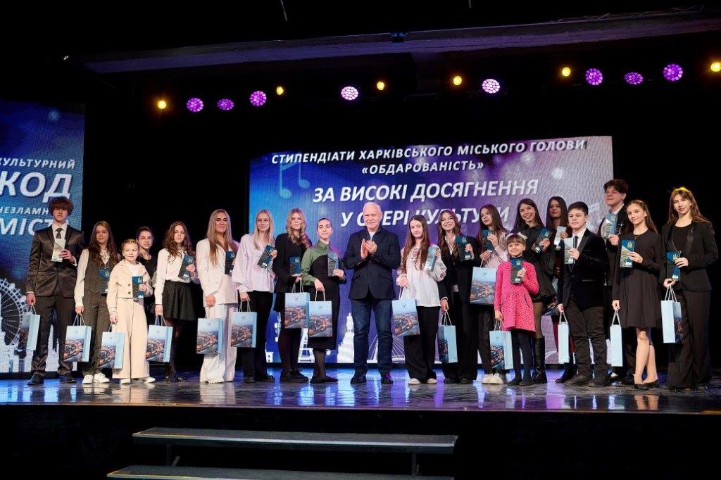 -20 учням та випускникам шкіл Харкова за високі досягнення у сфері культури – переможцям міжнародних і всеукраїнських творчих конкурсів і фестивалів (літературних, вокальних, хореографічних, музичних, образотворчого мистецтва);