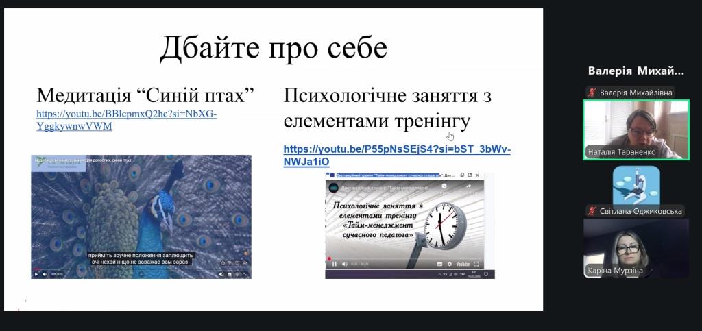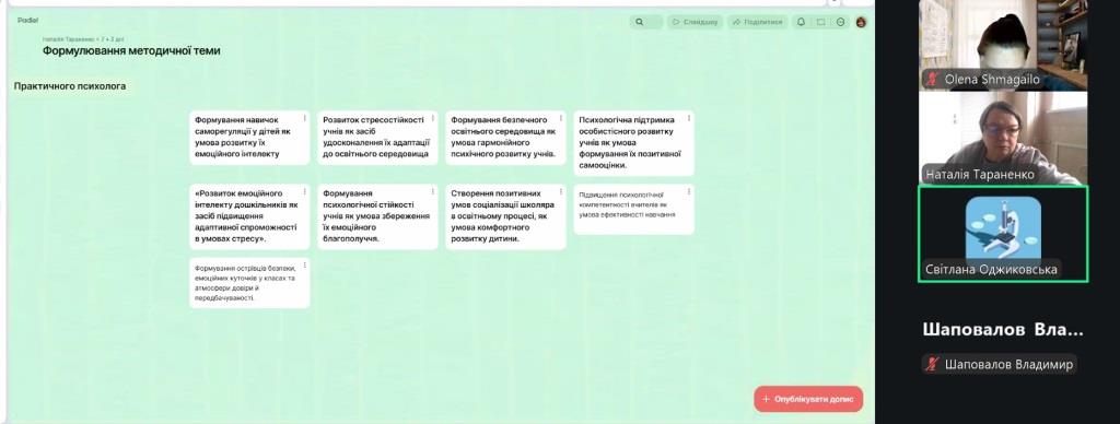 Під час зустрічі учасники розглянули особливості роботи над власною методичною темою, принципи її вибору та етапи реалізації. Фахівці отримали рекомендації щодо подолання бар’єрів у професійному розвитку та поради з ефективного тайм-менеджменту. Наприкінці заходу було представлено можливості підвищення кваліфікації на сучасних освітніх онлайн-платформах.