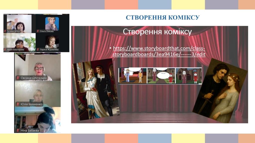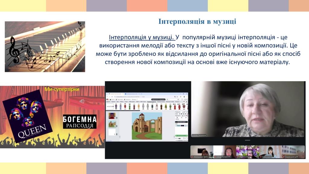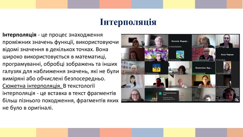 Учасники ознайомилися з інтерактивними методами роботи з текстом, зокрема застосуванням методу інтерполяції для розвитку критичного мислення, комунікації та креативності учнів. Було представлено приклади завдань, придатних для дистанційного й змішаного навчання.