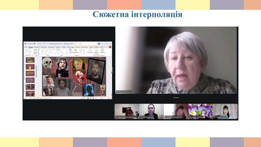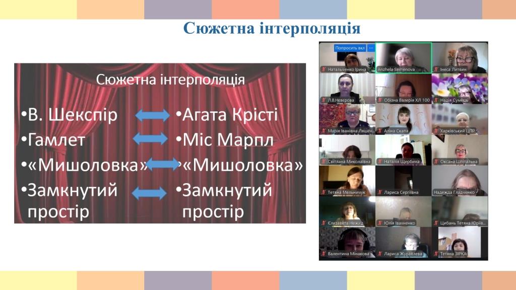 Тема заняття «Метод інтерполяції на уроках зарубіжної літератури як засіб формування м’яких навичок та активізації читацької діяльності» викликала значний інтерес. Спікеркою заходу була лауреат міського конкурсу «Учитель року - 2025» Анжела Семенова, учитель зарубіжної літератури Харківського ліцею № 49 Немишлянського району, учитель-методист, тренер-педагог НУШ, яка поділилася власним педагогічним досвідом і практичними напрацюваннями.