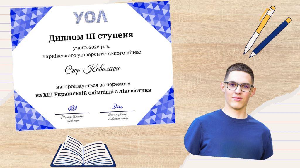 Протягом грудня 2025 року та березня 2026 року відбулася XIII Українська олімпіада з лінгвістики, що проходила в дистанційному форматі, яка об’єднала учнів з усієї України та школярів за кордоном. Учасники змагалися у двох турах, демонструючи глибокі знання, аналітичне мислення та вміння логічно й переконливо обґрунтовувати свої рішення.