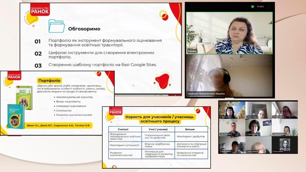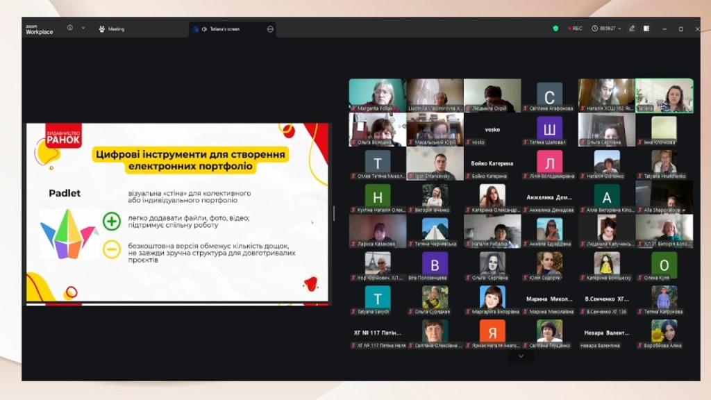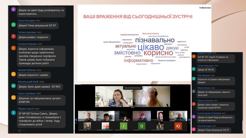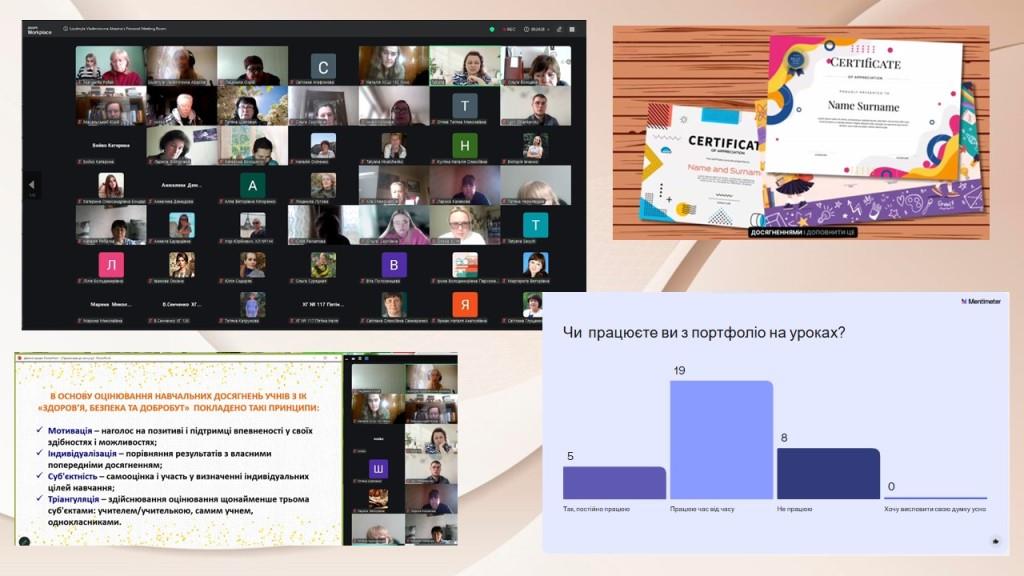 Під час заняття педагоги обговорили практичні кроки створення електронних портфоліо. Зокрема, розглядалися можливості платформи Google Sites для розробки структурованих шаблонів та використання Padlet як візуальної «стіни» для організації інтерактивної роботи з контентом: фото, відео та іншими файлами. Окрему увагу було приділено ключовим принципам сучасного оцінювання, а саме: мотивації, індивідуалізації, суб’єктності та тріангуляції.