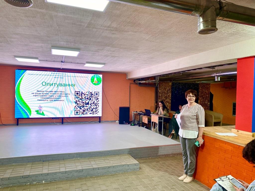 Координатор з виховної роботи ХНПУ імені Г. С. Сковороди Ірина Небитова у своєму виступі підкреслила, що учнівське самоврядування є важливим інструментом виховання відповідальної, ініціативної та свідомої особистості, здатної діяти на благо громади.