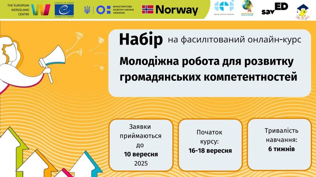 Для молодіжних працівниць і працівників, які працюють у школах, молодіжних центрах, просторах чи інших установах для молоді – 2 курси: