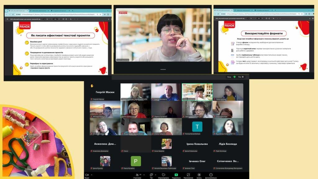 7 жовтня 2025 року Харківський центр професійного розвитку педагогічних працівників організував заняття Школи дистанційного навчання для вчителів предмету «Технології» у форматі відеоконференції. Тема зустрічі – «Штучний інтелект для вчителя технологій: від теорії до практики». Вебінар зібрав 56 педагогів міста.