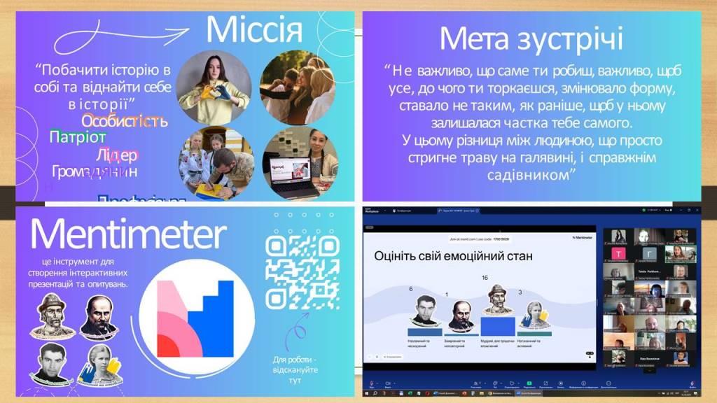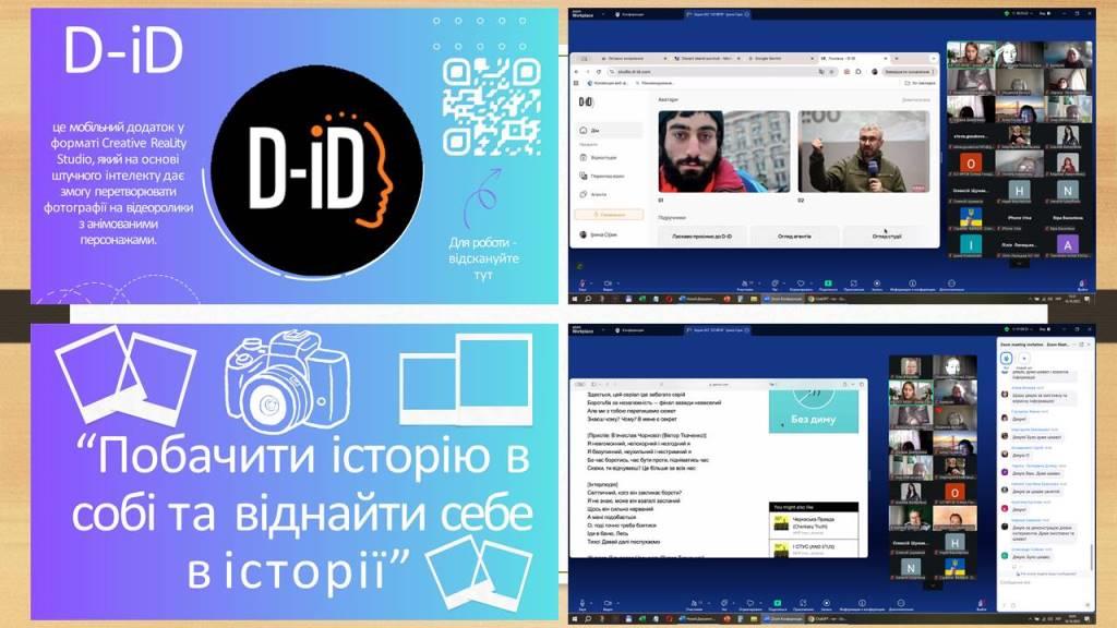 Під час заняття учасники поглибили знання та вдосконалили навички роботи з цифровими сервісами: використовували Mentimeter для створення інтерактивних опитувань і миттєвого зворотного зв’язку; на дошці Padlet (у форматі Sandbox) висловлювали свої думки та спільно моделювали відповіді на тему «Штучний інтелект: «за» і «проти», обговорюючи позитивні й негативні сторони його використання в освіті, а також ознайомилися з розширеними можливостями платформи. За допомогою Gemini учасники шукали історичні факти, вчилися проєктувати промти для отримання точної відповіді . У Canva створювали образи історичних постатей, плакати та візуальні матеріали для уроків. А завдяки D-ID «оживляли» історичних персонажів ‒ створювали короткі відео, у яких персонажі «говорили» до сучасних учнів.