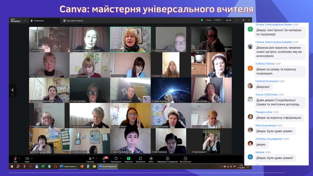 27 жовтня 2025 року відбулася чергова онлайн-майстерка з циклу «Секрети педагогічної творчості вчителя НУШ», організована Харківським центром професійного розвитку педагогічних працівників. Вона об’єднала понад 100 учителів початкової школи закладів освіти Харкова, які навіть під час канікул активно використовують час для професійного зростання та вдосконалення цифрових навичок.