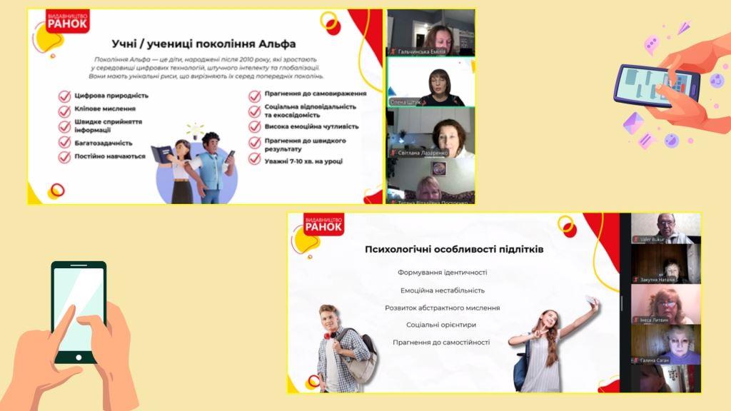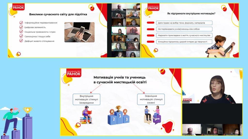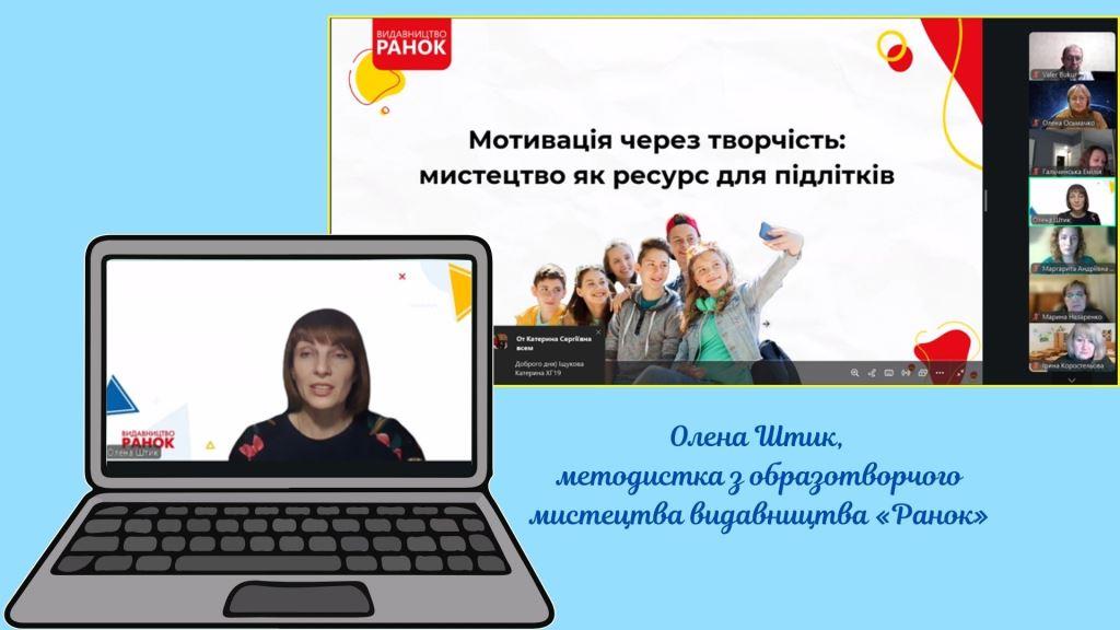 Захід проходив у форматі відеоконференції на платформі Zoom. Спікерка – Олена Штик, методистка з образотворчого мистецтва видавництва «Ранок», висвітила роль творчості у процесі розвитку підлітків.