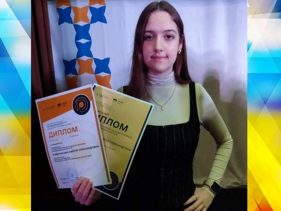 Амелія Гайворонська, учениця 9 класу Харківського ліцею №10 Основ'янського району, стипендіатка Харківського міського голови «Обдарованість» упевнено накопичує результати своїх досягнень стала переможницею олімпіади здобувши І місце та відзначена спеціальним дипломом імені Олексія Івахненка — за глибоке розуміння процесів моделювання та аналізу динамічних систем.