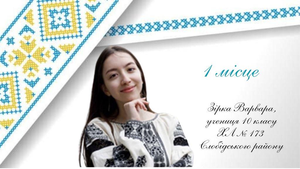 Зірка Варвара, учениця 10 класу ХЛ № 173 Слобідського району;