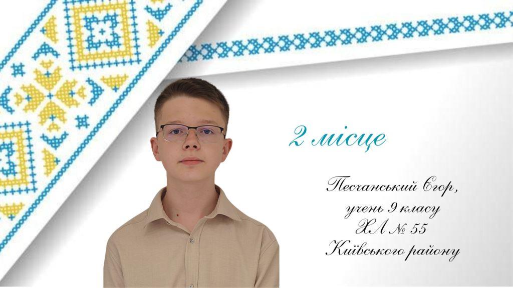 Песчанський Єгор, учень 9 класу ХЛ № 55 Київського району;
