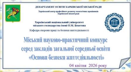04 квітня 2026 року Департаментом освіти Харківської міської ради спільно з Харківським національним університетом міського господарства імені О.М. Бекетова у дистанційному форматі вдесяте проведено міський науково-практичний конкурс серед закладів загальної середньої освіти «Основи безпеки життєдіяльності». Ключовим завданням заходу є розвиток культури безпеки життєдіяльності серед учнівської молоді, що передбачає усвідомлення цінності здоров’я та формування стійких умінь реагування на надзвичайні події. У змаганні взяли участь 9 команд закладів освіти з усіх районів міста та команда ліцею № 174.