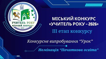Міський конкурс «Учитель року – 2026», який стартував 4 листопада 2025 року, проводиться під патронатом Харківського міського голови Ігоря ТЕРЕХОВА за чотирма номінаціями, визначеними наказом Міністерства освіти і науки України: «Англійська мова», «Громадянська освіта», «Математика», «Початкова освіта».