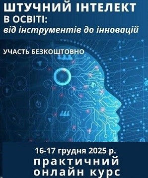 Про проведення практичного онлайн-курсу «Штучний інтелект в освіті: від інструментів до інновацій»Опублікував admin. Дата публікації 09/12/2025Теги: Загальні